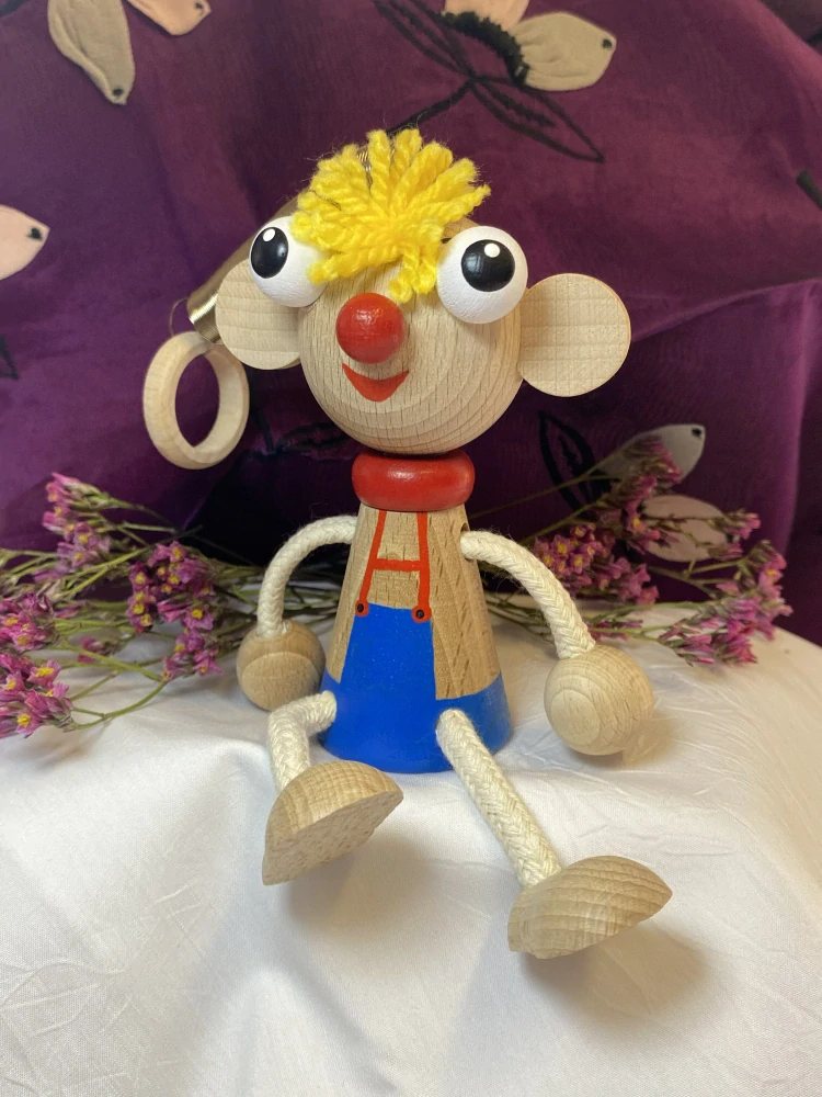 Dřevěná hračka na pružině Hurvínek od značky TOYLA je krásným doplňkem do dětského pokoje i milým dárkem pro malé milovníky zvířátek a pohádkových bytostí.