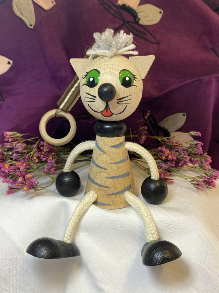 Dřevěná hračka na pružině Kočička od značky TOYLA je krásným doplňkem do dětského pokoje i milým dárkem pro malé milovníky zvířátek a pohádkových bytostí.