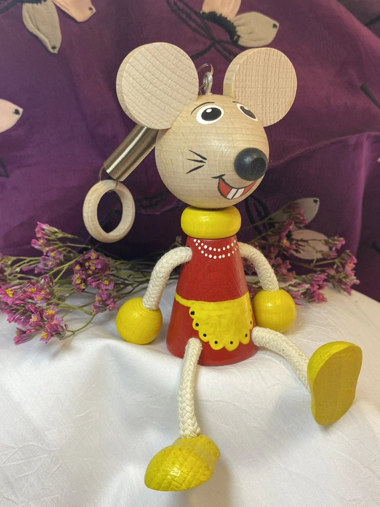 Dřevěná hračka na pružině Myška od značky TOYLA je krásným doplňkem do dětského pokoje i milým dárkem pro malé milovníky zvířátek a pohádkových bytostí.