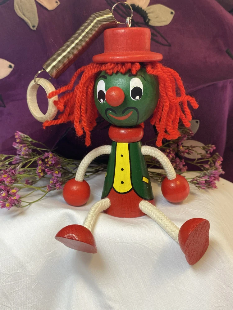 Díky pevnému dřevěnému kolečku na horní části pružiny lze hračku snadno zavěsit – například do dětského pokoje, nad postýlku nebo do hracího koutku. Po jemném popostrčení se hračka začne vesele houpat a pohupovat, čímž přirozeně přitahuje dětskou pozornost a podporuje hravost.