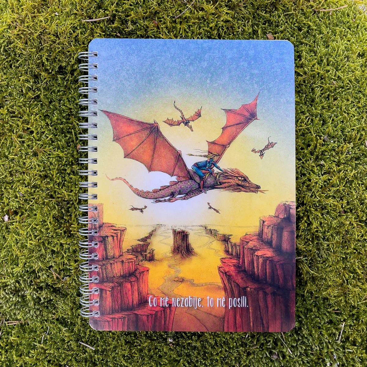 Praktický kroužkový, linkovaný zápisník formátu A5 (14,8 x 21 cm) s 50 listy hezkého lehce nažloutlého papíru, po kterém tužka 3B příjemně drandí. Přední obálka s obrázkem je ze silného (350 g) křídového papíru. Zadní obálka je ze silného šedého kartonu bez potisku. Vazba je kroužková – drátěná.