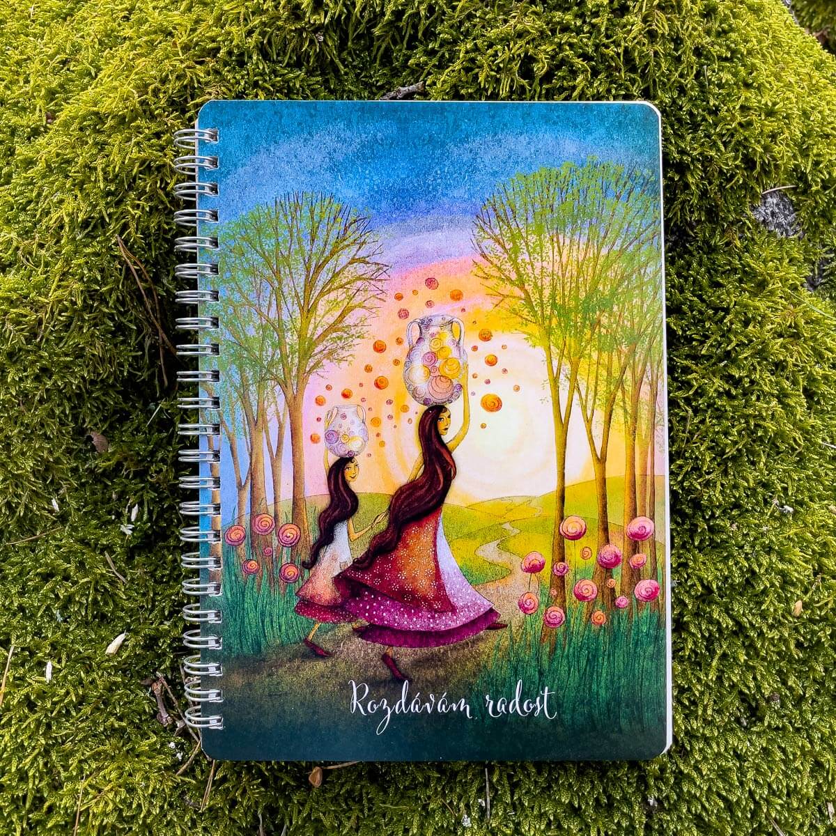 Praktický kroužkový, linkovaný zápisník formátu A5 (14,8 x 21 cm) s 50 listy hezkého lehce nažloutlého papíru, po kterém tužka 3B příjemně drandí. Přední obálka s obrázkem je ze silného (350 g) křídového papíru. Zadní obálka je ze silného šedého kartonu bez potisku. Vazba je kroužková – drátěná.