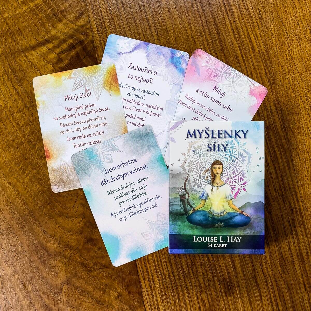 Co si myslíte právě teď? Chcete-li žít život ve své síle, je zapotřebí, abyste do své mysli "nainstalovali" Myšlenky síly - a právě k tomu vám mohou skvěle pomoci tyto inspirační karty. Vytáhněte si každé ráno kartu na celý den a afirmaci noste v mysli tak dlouho, dokud s vámi zcela nesplyne.
