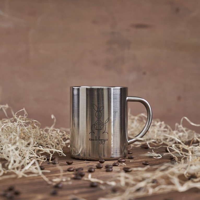 Naše nová varianta plecháčku obsahuje dvojitou stěnu, díky ni je ideální pro horké nápoje. Logo Kávy do kapsy je do plecháčku vygravírované a je tak opravdu odolné, což umožňuje mytí plecháčku v myčce. Není však vhodný do mikrovlnky ani na oheň, jelikož mi v mikrovlnce kvůli svému povrchu "jiskřil" a na ohni by díky dvojitému dnu trvalo uvaření vody příliš dlouho a mohl by se i poškodit.
