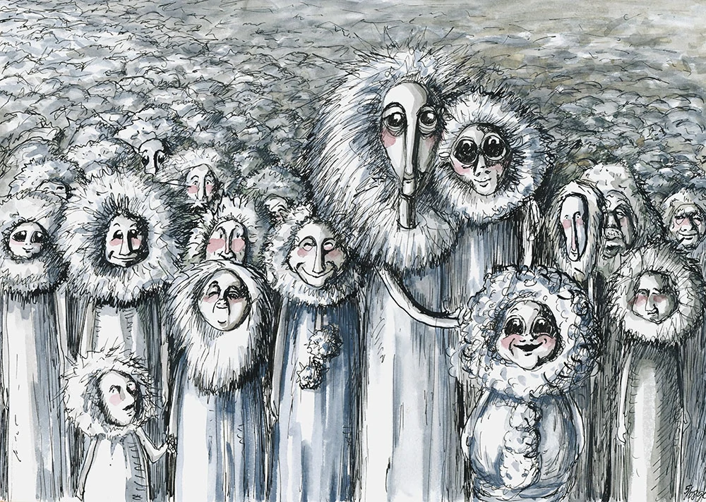 Originál tohoto komorního díla vznikl technikou perokresby, kolorované vodovými barvami. Jemná linka a transparentní barvy vytvářejí snovou scénu, která tiše zve ke zpomalení a usebrání.