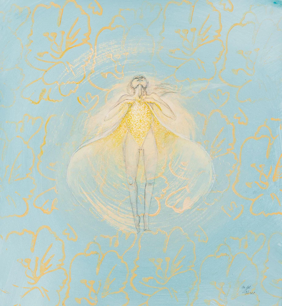Obraz „Světlo ve mně“ od Miluše Gloserové zachycuje napojení na zdroj nekonečné blaženosti a vnitřního světla. Motiv propojuje světlo v nás všech a přináší pocit harmonie a klidu do vašeho domova.