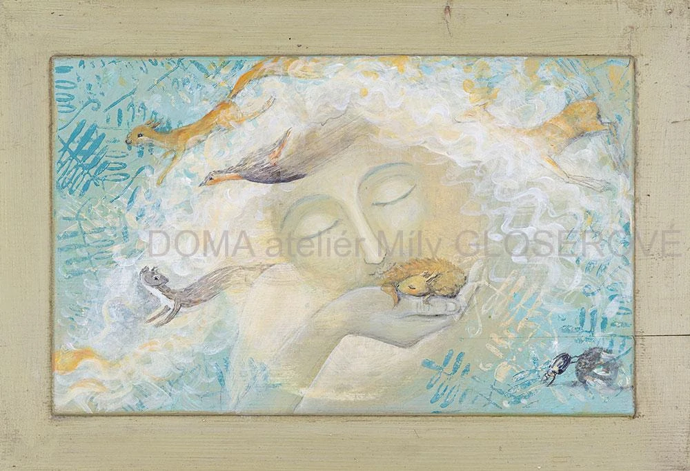 Obraz s názvem Souznění je vizuálním vyjádřením harmonie mezi člověkem, zvířaty a přírodou. Tento originální motiv vybízí k zamyšlení: „A jak to máte vy?“