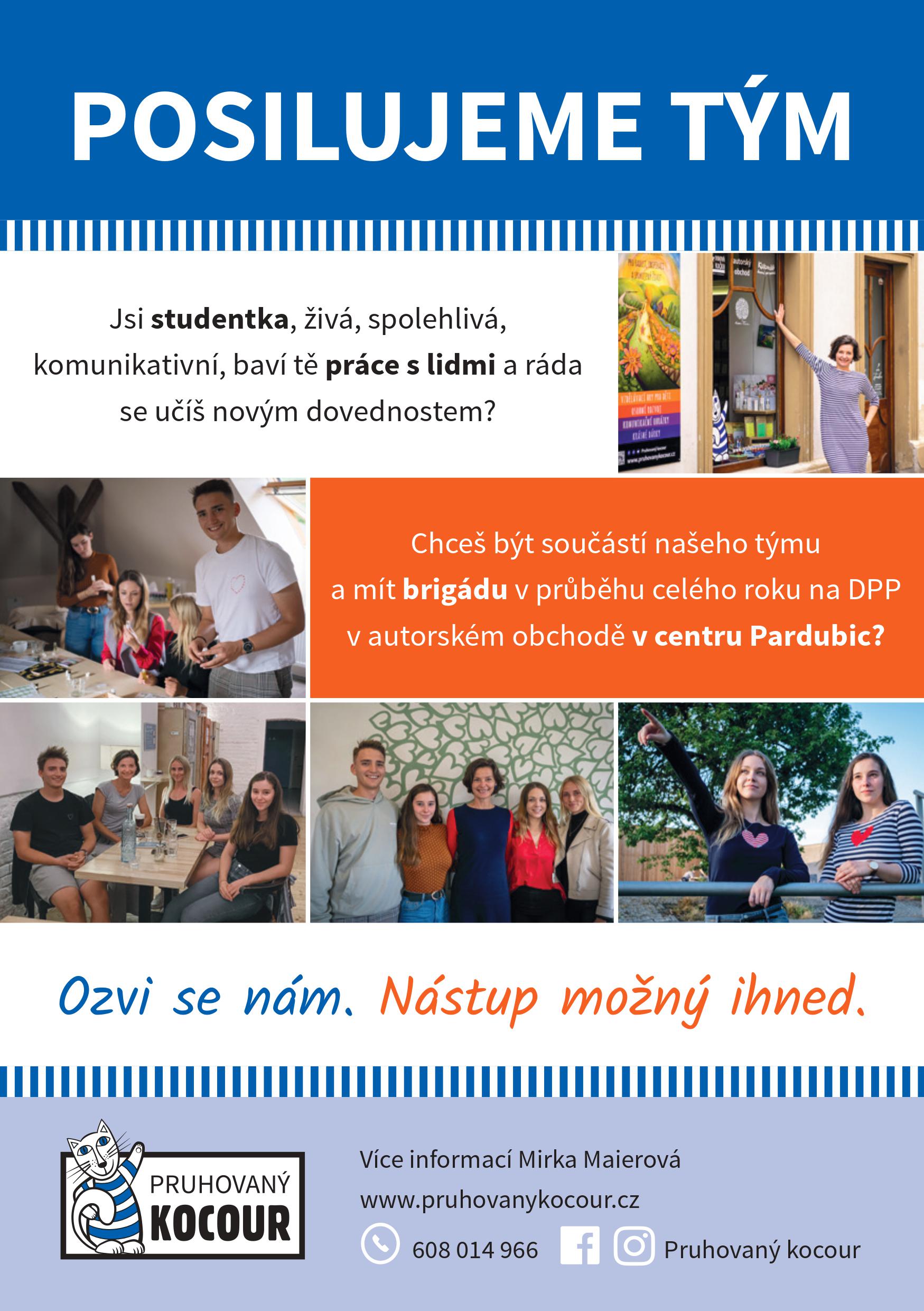 Chceš být součástí našeho týmu a mít brigádu v průběhu celého roku na DPP v autorském obchodě v centru Pardubic?