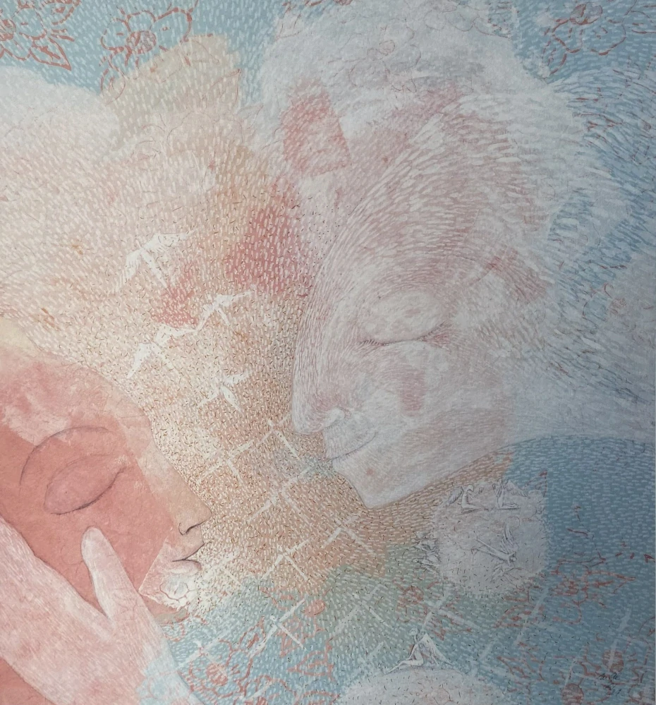 braz „Nejsi sám“ přináší pocit jemné, tiché přítomnosti a vnitřního klidu. Připomíná, že skutečně nikdy nejsi sám – a otázky, které klade: „Víš to? Vnímáš to? Cítíš to?“ nás vedou k vnímání blaženého spolubytí. Kompozice obrazu vyzařuje něhu, spojení a harmonii, která uklidňuje a otevírá prostor pro tichou radost a jistotu přítomnosti.