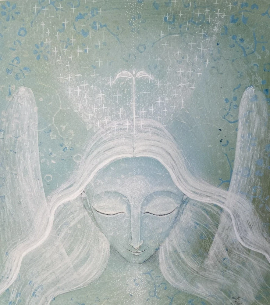 Originál obrazu je vytvořen kombinovanou technikou, při níž autorka Miluše Gloserová využívá otisky starých malířských válečků do podmalby. Do této struktury maluje a kreslí jemné bytosti světla, které dodávají dílu hloubku, jemnost a dynamiku, jež symbolizuje vznikající život.